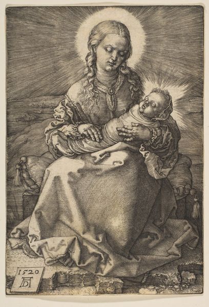 Jan Gossart made this engraving of the Madonna and Child in the early 16th century, deploying the technique of hatching - closely-spaced parallel lines - to create an image of impressive tonal range. The lines are all, of course, on the surface. Yet, notice how they render three-dimensional form and suggest different materials, from the soft flesh of mother and child to the heavy drapery that surrounds them. Engraving is a slow, additive process. Using a tool called a burin, the artist carefully incises lines into a metal plate, which is then inked and printed. In Gossart’s time, printmaking was becoming a major industry, allowing for the mass production and distribution of images. It took the skills of the hand to create the plate from which multiples could be made and disseminated. This beautiful print shows how even a mechanically-reproduced image can be the result of skillful making. By understanding the nature of its production, we can appreciate the artistry involved.