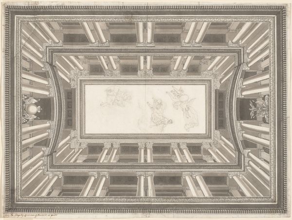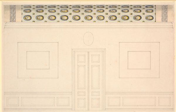 Jules-Edmond-Charles Lachaise made this design for a ceiling with graphite and watercolor. Lachaise was working in France during a period when architects and designers were revisiting historical styles. This drawing reflects a neoclassical sensibility, where order and symmetry were highly valued. The overall design is geometric, with rectangular and circular motifs creating a sense of balance. The soft color palette of blues, pinks, and browns suggests a desire for elegance and refinement. Ceilings like this would have been commissioned for wealthy patrons who wanted to demonstrate their social status through carefully curated interiors. To fully understand this design, we need to delve into the decorative arts and architectural history of early 20th century France. Auction catalogs, interior design magazines, and pattern books can shed light on the aesthetic values and social meanings embedded in this drawing.