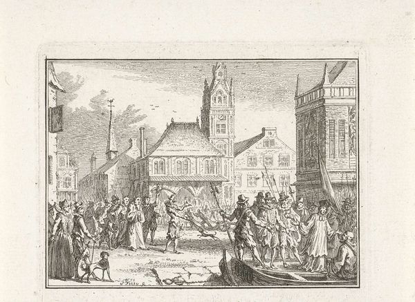 Simon Fokke produced this etching depicting a mutiny of sailors in Amsterdam in 1629. Although Fokke created this piece in the 18th century, he references a historical event from the Dutch Golden Age. Here, Fokke presents us with a clash between social classes; we see rebellious sailors confronting the established authority, represented by the imposing building. The uprising is a challenge to the hierarchical structure of Dutch maritime society, where sailors, often from the lower classes, were subjected to harsh conditions and strict discipline by their superiors. This image offers insights into the social tensions and power dynamics within the Dutch maritime world. Archival records, such as ship logs, court documents, and personal letters, can help us reconstruct a richer understanding of the sailors' grievances, motivations, and experiences. Fokke's etching reminds us of the importance of understanding art within its broader historical and social context.