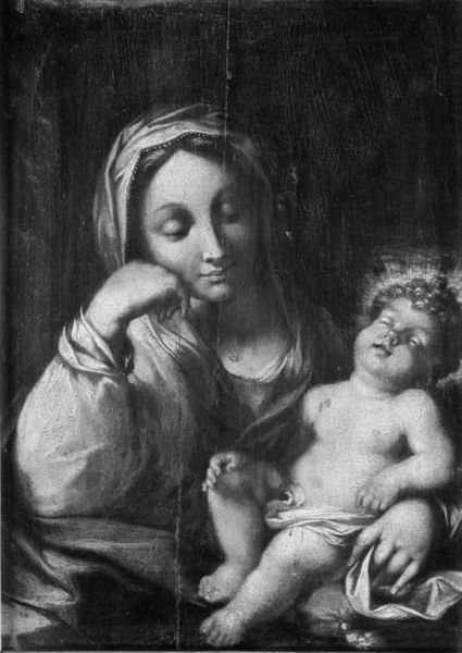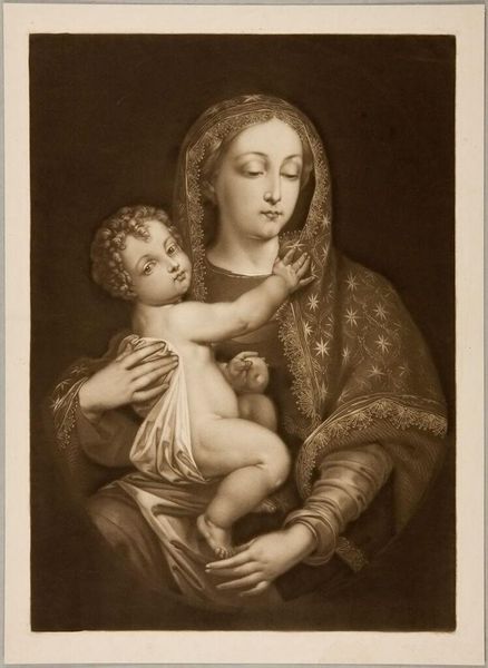 Editor: Here we have "Virgin Mary with the Infant Jesus and the Little John," an oil on canvas painting by Carl Christian Seydewitz, made sometime between 1792 and 1857. It feels like such a formal, staged scene. What's your interpretation of this work? Curator: Well, situating Seydewitz's work within the context of late 18th to mid-19th century artistic and social landscapes is essential. Paintings such as this served multiple public functions, particularly within religious institutions. How do you think the style, with its echoes of Baroque grandeur, contributes to the painting's intended role? Editor: It definitely feels… authoritative? Like it’s supposed to instill reverence. The soft lighting, the classical composition… it's all very carefully constructed. It projects power, somehow. Curator: Precisely. Think about the politics of imagery during that period. Religious art wasn't merely about personal devotion. It also served as a form of social control and a reflection of existing power structures. Consider who would have commissioned such a work and where it would have been displayed. Editor: So it’s less about individual artistic expression and more about reinforcing the Church’s or patron’s influence? That makes the almost sentimental depiction of motherhood more strategic, I guess. Curator: Indeed. While personal faith certainly played a part, the painting's public role and its consumption by various audiences were carefully considered. The way the figures are idealized, their clothing, even the landscape… these elements construct a very specific visual narrative. The image, while seemingly traditional, engages with complex social dynamics of its time. Editor: This is fascinating, I hadn't thought of it that way at all. Thank you for putting it in historical context. Curator: My pleasure! It’s important to remember that art isn’t created in a vacuum, and understanding the socio-political landscape can really unlock a work’s meaning.