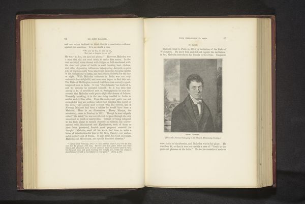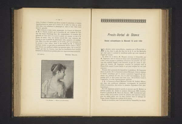 Curator: Here we have a photomechanical print that reproduces an early self-portrait by Robert Cornelius, likely taken before 1905. It’s part of a book, if you look closely. Editor: It has such a fragile, haunted feel. I wonder about the person depicted within. It's like looking at a ghost trying to materialize on the page, almost an attempt to hold on to a passing moment. Curator: Considering its status as a reproduction within a book, we should consider this as a commodity – reproducible and replicable within an emerging mass media landscape. Cornelius would not have seen this dissemination. Editor: That takes some of the mystique away, in a way, doesn’t it? It also introduces the potential for altered interpretation. But maybe even with those reproductions, people still connect with the idea of identity being captured, however many times removed. Curator: That makes me think about labour: the process of making it, publishing it, and the historical labor it represents. What were the social conditions allowing that particular reproduction to be made? Editor: I also sense the artist reaching for something… maybe a permanent presence, a sort of proof of existence in an era where such a thing felt truly radical. The vulnerability on his face feels especially striking. Curator: I am reminded, that photography like this helped to produce notions of idealization and classification that in time helped to structure hierarchical labor processes of photographic labor and, subsequently, artistic valuation. Editor: I feel myself gravitating back to that lone individual within. Something about that intense stare really grounds us. He managed to pierce through all that materiality. Curator: So we have come full circle; starting with a focus on material processes but perhaps also reflecting on the enduring power of a reproduced image and the labour it reflects. Editor: Yes. That moment captured, even at several removes, retains its original poignancy, which seems to resist any reduction to purely material components.
