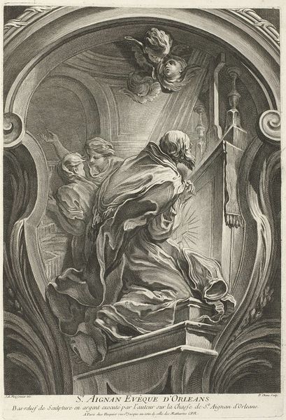 Editor: Here we have "Tavola Di Pergentile E Venanzo Da Camerino" from 1898 by Giuseppe Barberis. It looks like a drawing, maybe pen and ink. I’m struck by the use of vertical lines and the many figures in this pretty small frame. How do you interpret this work? Curator: The subject and Barberis’ technique transport us back to the medieval era, doesn't it? We must consider not only Barberis' individual skill but also the revivalist impulse of the late 19th century. What narratives do you think the figures convey, and how might these figures have been interpreted during the period, given its intersection with religious authority and societal structures? Editor: I suppose they seem reverent, in their stances and placement in the artwork's composition. What I find puzzling is, how would the intersection of religious authority with the artwork affect my understanding of the people depicted? Curator: Examining gender and class depictions alongside historical understandings of power structures helps to identify the underlying ideologies shaping artistic representation, enabling dialogue about faith, politics and lived experience in both Barberis’ time and our own. It also prompts reflection on art history's influence in constructing dominant narratives. How does viewing artwork through such lenses change our relationship with it, and ourselves? Editor: It makes the artwork speak about our time in a louder voice! Thank you! Curator: And the lines become bolder! Avenues for new insight have emerged for both of us today!