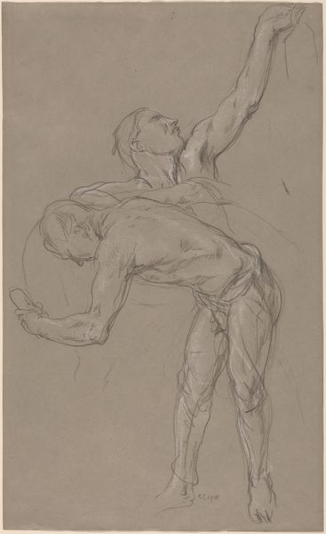 Editor: This is Paul Baudry's "Seated Male Nude (recto); Crouching Male Nude (verso)", made between 1864 and 1874, using pencil. What strikes me is the use of, seemingly, one sheet of paper, used for the creation of two distinct nudes. What can you tell me about this work? Curator: Consider the materiality: pencil on paper. Cheap, reproducible. Baudry's choice subverts the classical heroic nude typically rendered in marble or oil paint, which reinforced class structures. Editor: Interesting. How so? Curator: These are studies. They speak more to the means of artistic production accessible to the masses in the 19th century rather than a celebration of aristocratic values. The recto and verso nature hints at the artistic labor - every surface is valuable, right? Does the rapid drawing style seem efficient to you? Editor: It does, there’s an immediacy to the line work. How does this connect to social context? Curator: Academic art was the product of intense, almost industrial production methods. Think of the economics here. Academic workshops used cheap materials like paper and charcoal/pencil for training in replicating established aesthetics. In the late 19th Century, art’s means of reproduction, thanks to advancements in printing technology, became widely disseminated through inexpensive periodicals and books, fueling artistic trends but also disrupting hierarchies of production. What do you think about that? Editor: That does make you rethink this. Seeing it not as a grand statement but part of a larger production chain. Thanks, that perspective shifted my view entirely. Curator: Precisely. The beauty of looking closely is reevaluating what’s at stake.