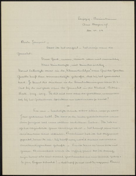 This letter to Anna Dorothea Dirks, written by André Jolles, is a flurry of handwritten marks on paper, probably with a fountain pen. The ink varies in density, like the pressure of his thoughts shifting as he writes. Look closely, and you’ll see how the loops and tails of the letters create a kind of rhythm, almost like a musical score. You can almost feel Jolles there, processing grief into language. I’m drawn to the way the words cluster and spread across the page. Each sentence feels like a little world. Jolles's hand, with its unique script, is like a fingerprint of his mind. It reminds me a bit of Cy Twombly, how he made text into image, or vice versa. Art is a conversation across time, a way of reaching out and finding connection in the messy, beautiful chaos of being human.