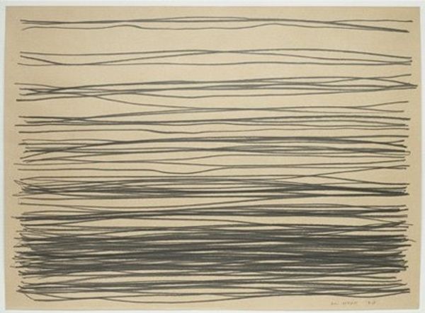 Lee Ufan made "From Line" with paint and a brush, and maybe more than one brush. The way he pulls that pigment down the canvas, so that it fades to almost nothing is really something, isn't it? Each stroke starts with conviction up top, and then seems to evaporate. The top is resolute, and the bottom is, well, open to possibility, like how we feel some days. I love the materiality here, the way the surface is activated by the gesture. You can almost feel Ufan standing there, thinking about the mark he wants to make. There's something meditative about it. It makes me think about Agnes Martin. There's a similar quietness, but with Ufan, there's also this sense of the hand, the body, in the process. It's like he's saying, "Here I am, making this mark, and then letting it go." What else is there to do?