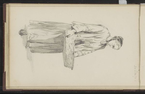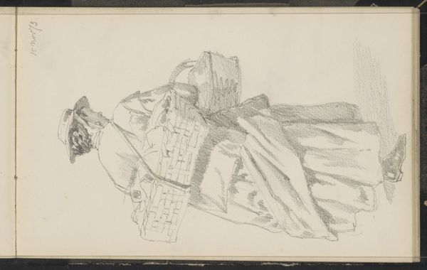 Here we see a pencil drawing, "Woman with a Basket on Her Head," by Cornelis Springer. The subdued tones create a composition with a complex interplay between light and shadow that emphasizes the form. Springer's drawing masterfully uses line and shading to build a structural framework. The rhythmic pattern of the woman's dress, delineated with subtle gradations of tone, leads the eye up to the basket. This directs our attention to the intricate weave of the basket, which is rendered with a level of detail that contrasts with the looser treatment of her clothing. The form of the basket, towering over the figure, introduces questions about weight, balance, and perhaps even societal expectations. The slight blurring of lines suggests movement, perhaps reflecting the woman's everyday labor. This drawing, therefore, becomes not just a depiction, but an exploration of form and function within a specific social context.