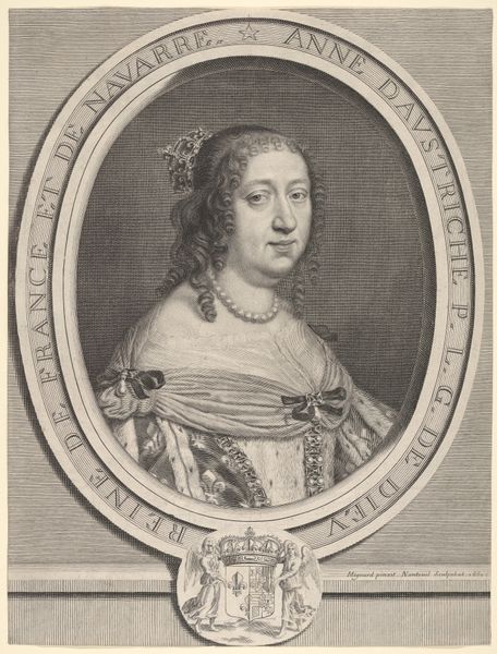 Georg Martin Preissler captured Anna Maria Luisa's likeness in this engraving, framing her within a circle of laurel. The laurel wreath, a classical symbol of triumph and eternity, suggests more than mere nobility; it speaks of lasting legacy. Consider how laurel, once adorning victorious athletes and emperors, now encircles a princess, a subtle transfer of power and honor across millennia. Her pearls and the diamond tiara add to this imagery: jewels, the timeless emblems of purity and status, remind us of the continuous human desire to mark importance. These recurring motifs, passed down through generations, highlight the enduring power of symbols. Here, they elicit the psychological weight of lineage and expectation, engaging us with a narrative far beyond a simple portrait.