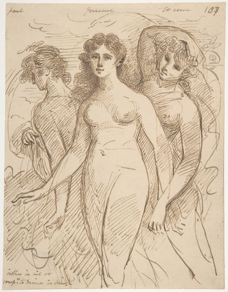 Curator: I find the disquieting mood rather fascinating in this lithograph by Henri de Toulouse-Lautrec from 1896 entitled, “Debauchery (second floor)”. It depicts two women amidst a wash of diluted color. What’s your immediate reaction? Editor: My first impression? Oh, honey, it feels like a Tuesday night gone sideways! All hazy edges and questionable decisions hanging in the air. It’s beautiful but also gives me the slight shivers. You know? That mix of beauty and trouble. Curator: Lautrec's print, which doubles as an advertisement for a poster catalog, reveals the prevalent male gaze inherent in the Parisian demimonde. How do you see that impacting the image's narrative? Editor: Ah, the gaze! Yes, it’s there, slathered all over this like cheap cologne. But even within that frame, I see these women claiming space, exhausted maybe, definitely rumpled, but undeniably there. Like, we’re not just objects, buddy. We’re…complicated. Curator: Precisely! Their weariness becomes a powerful statement about agency and resistance. The blurred lines, both literal and metaphorical, complicate our perception. What can you tell us about how he employs those lines? Editor: Honey, his lines are a hot mess, aren’t they? Scratchy, urgent. Like he was sketching a dream fading too fast. They feel…honest, almost painfully so. You get the impression of real flesh and bone. Flaws and all. None of that sanitized perfection. Curator: It’s as if we’re seeing a fleeting, intimate moment. Considering the social and political landscape of the era, how might viewers have interpreted this glimpse into such a space? Editor: I imagine some were titillated, others scandalized. Back then, just showing these "loose women" owning their space was rebellious, right? Goodness. Nowadays, looking at it, I'm torn. I love the raw humanity, the artist’s knack for raw emotion. But yes, that leering side-eye of history makes me itch. It’s layered. Curator: Exactly. Lautrec captures a tension inherent in looking, both observing and judging. What started as voyeurism transforms into social commentary, pushing viewers to question the dynamic between subject and spectator, and to confront the hypocrisy surrounding gender and morality. It's quite brilliant! Editor: I completely agree. It gets under your skin in the best—and maybe worst—ways. I feel like I've actually just shared a cab ride home with these ladies.