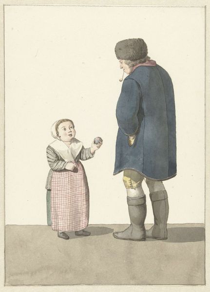 Gesina ter Borch made this watercolor drawing, "Boy Giving an Apple to a Younger Boy," in the Netherlands sometime in the 17th century. Ter Borch’s works often depicted scenes of daily life, offering us glimpses into the cultural values and social structures of the Dutch Golden Age. This intimate exchange between the two boys speaks volumes about the era's emphasis on charity and social harmony. The act of giving, particularly from an older child to a younger one, reinforces prevailing notions of hierarchy and responsibility within the family and community. Ter Borch, who never married, was able to pursue her artistic career because of the support of her family. To fully appreciate Ter Borch's art, we need to look into Dutch society, its economic prosperity, and the role of women within it. Archival records, personal letters, and historical accounts help to flesh out our understanding. It's through such historical context that the drawing truly comes to life, revealing the subtle yet significant commentary on the social fabric of its time.