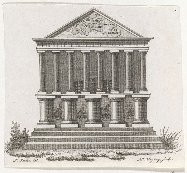 Curator: This engraving, created sometime between 1530 and 1580, comes to us from Nicolas Beatrizet. It’s part of a larger series known as the *Speculum Romanae Magnificentiae*, or “Mirror of Roman Magnificence." This particular image depicts the Temple of Fortune in Rome. Editor: Wow, my first impression? Impressive, but a little…severe. It feels like an architect's precise rendering, more about the structure than any kind of atmosphere. It’s like a building caught in aspic. Curator: Well, the *Speculum* served a vital purpose. These prints allowed people throughout Europe to experience Rome’s architectural wonders without physically traveling there. They were instruments of power projecting Roman imperial ambitions. The detail isn't merely aesthetic, it's about conveying authority. The temple isn't simply there; it's meant to dominate visually. Editor: Dominating, yes, definitely picking up that vibe. But, like, does Fortune approve of being documented with such rigidity? Feels like the opposite of luck’s fluid nature, doesn't it? Curator: That tension is very interesting. On one level, we see an attempt to contain and codify, to represent Roman power and order. At the same time, the choice of the Temple of Fortune raises complex questions around fate, chance, and the unpredictable nature of power itself. After all, empires rise and fall. Editor: You’re right. It makes you think about how nothing lasts forever, even when carved in stone, or meticulously etched in a plate for printing. The crisp lines make me think that everything is knowable but by choosing Fortune as the topic shows how it can be so fleeting. There's some real clever juxtaposition at work here. Makes you wonder if Beatrizet was low-key critiquing Roman ideals, a subtle dig amid the architectural documentation. Curator: A very compelling reading. To view the image beyond its face value requires us to consider that a static image of something always remains bound by social tensions. Its clear lines contrast it and gives a deeper sense of instability to Fortune herself, which becomes, dare I say, a quiet critique through representation. Editor: Well, it was wonderful turning this rigid architectural diagram into something a bit more…fortuitous, don't you think? Curator: I concur! Analyzing artwork within its social and political frameworks helps us find meaning behind what meets the eye.