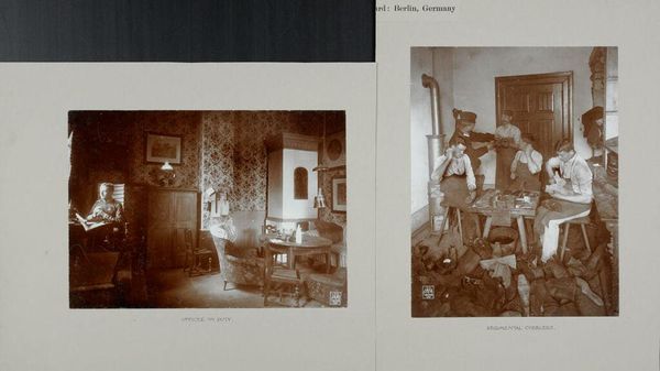 Editor: This is a photographic work by James E. West, titled "Social Revolution (?): United States. New York. Mt. Lebanon. Shaker Communities: Shaker Communities, United States," the date is unknown and the medium is unknown. It shows four distinct images of what appears to be a Shaker community. What social dynamics do you observe within these images? Curator: Well, it's interesting to see the visual representation of the Shaker community. The composition suggests a structured, perhaps even utopian, society. Note the gendered division of labor evident in the kitchen and workroom images. How might this imagery play into the broader narrative of American social experimentation and reform movements? Editor: I see that. So, it's not just a document but a statement about their ideals? Curator: Precisely. Early photography was frequently leveraged to promote ideological frameworks. Are these images trying to say something about the success and sustainability of Shaker life, in contrast to mainstream American society? Editor: I hadn’t thought about it that way. It’s more complex than just a record. Curator: Indeed. Context is everything. It changes how we read the images and their purpose.