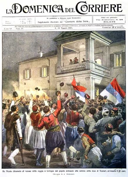 Achille Beltrame made this image of the King and Hon. Salandra visiting the front of the war, and you can see his approach to color and mark-making as part of an ongoing process. The colors in this image, mostly muted greens and browns, feel like they’ve been layered. The surface has a certain kind of flatness, and you can almost feel the texture of the paper. If you look at the way the soldiers are painted, you can see quick, confident strokes. Take a look at the solider at the front of the image, the one whose back is facing us. Notice how a few simple marks create the folds of his uniform and the shape of his backpack. This economy of line reminds me of some war photography; the way it captures a moment with clarity and immediacy. The way Beltrame works is similar to someone like Otto Dix. Both artists were involved in war, both artists were able to portray what that meant using very simple marks. Ultimately, it’s not just about what’s depicted, but how it’s depicted.