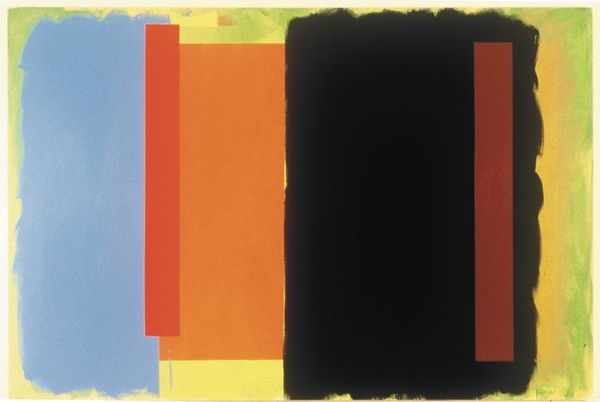 Doug Ohlson made this untitled painting with, what looks like, thinned-down acrylic on canvas. It's all about how the color interacts, and you can feel the push and pull as Ohlson worked. The painting has four sections; each with bold geometric shapes. Look how the pink and orange of the first section bleed into the canvas, contrasting with the clean lines of the stripes. This contrast gives the piece a raw, process-oriented feel, like you're seeing the artist's thought process laid bare. There's a real material honesty. It is like he’s revealing the mechanics of painting. It reminds me of the work of someone like Agnes Martin, with the quiet and careful placement of line and color. This piece is less about a fixed statement and more about the openness of seeing and thinking.