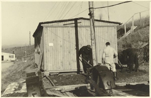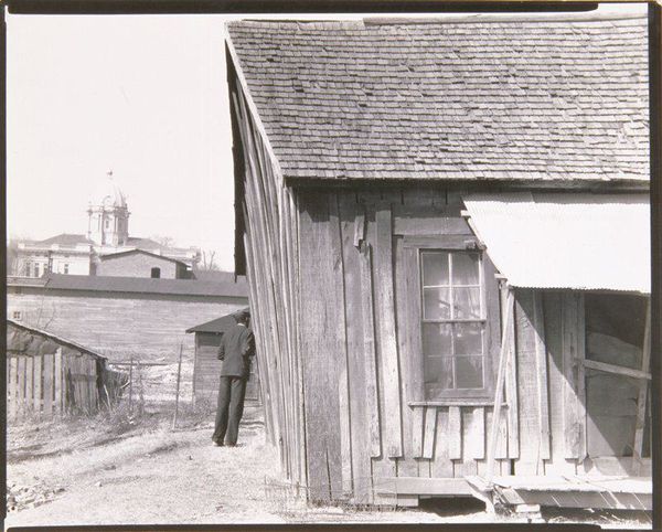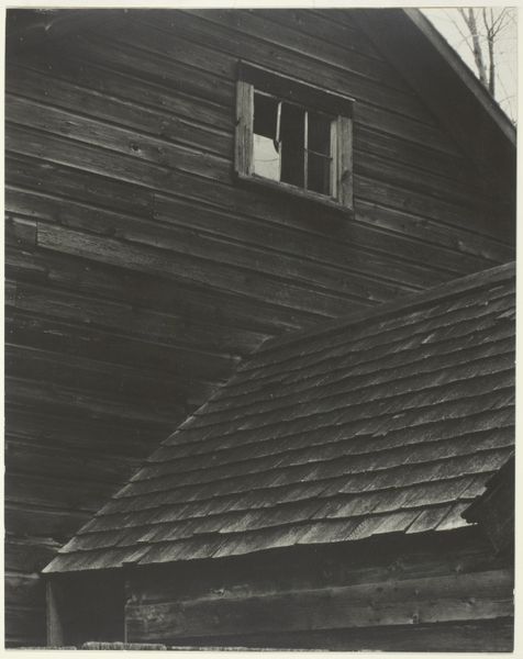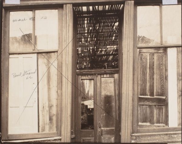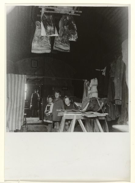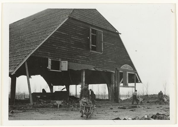 Editor: So, this is “Vrouw in de deuropening van een geïmproviseerde woning” - “Woman in the doorway of a makeshift house." It’s a gelatin silver print from between 1945 and 1947, taken by Anefo. The texture of the wood and the woman’s clothing makes me wonder about her story and her life. How would you describe this work, especially knowing the context? Curator: It whispers of resilience, doesn't it? This image breathes post-war Netherlands, a landscape scarred but not broken. I imagine Anefo finding poetry in the everyday—the makeshift dwelling a symbol of both hardship and ingenuity. Look at how the light falls, almost theatrical. It feels like we’re catching her in a private, powerful moment, even in this stark setting. What strikes you most about the composition itself? Editor: It's interesting that you call it theatrical! I thought it was very realist and direct, capturing a moment in time with stark lighting and plain style. I notice that everything seems built or repaired in some way; for example, the mismatched door held together with brackets, or the patched construction of the home itself. And then there's a delicate vase of flowers in the window. Curator: Precisely! That juxtaposition—the rough-hewn structure versus the delicate flowers—it sings! For me it's all about what remains in the aftermath. Here's what I'd like to ask: do you think those choices make a social comment, or are simply pragmatic in nature? What about those two interpretations changes how you view the woman in the doorway? Editor: Wow, I never thought of it that way! It's almost as if Anefo wanted us to think about both hardship and beauty in the same image. Curator: Absolutely. Anefo, whether consciously or not, immortalized a quiet strength, a stubborn hope blooming amidst the ruins. And that, for me, makes it profoundly moving. Editor: It makes me look at this gelatin print in a completely different light! There's just so much to read into a photograph from daily life when we place it in the context of post-war Holland.