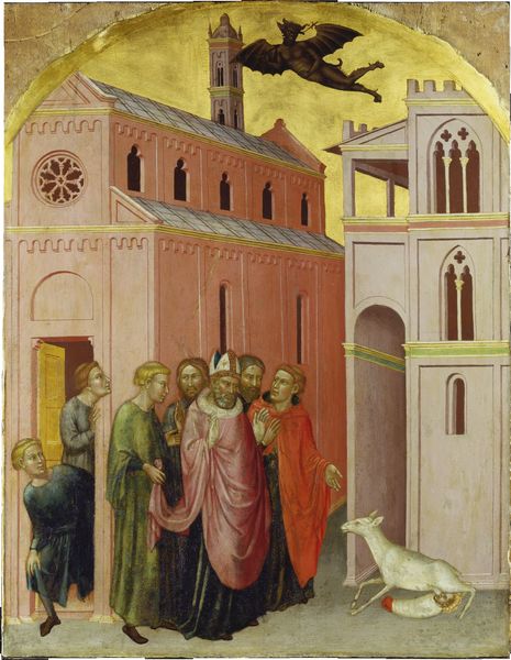 Giovanni di Paolo painted "Saint Catherine of Siena Receiving the Stigmata" with tempera and gold on wood in the early Quattrocento. Saint Catherine, a tertiary of the Dominican Order, was a highly influential philosopher and theologian. Here, the artist captures her spiritual ecstasy as she receives the stigmata, the wounds of Christ. This depiction occurs in the late medieval period, a time when the rise of powerful women within the Catholic church provided new representations of female identity. The ethereal and stylized rendering is typical of Sienese painting. Catherine’s traditional nun’s habit is contrasted with the gold of her halo and the stigmata. Her upturned face is a study in devotion as she gazes upon the crucified Christ. The painting presents an alternative narrative about the power of female spirituality. It invites us to reflect on the historical and cultural forces that shaped both Saint Catherine’s life and the painting itself. This piece transforms the personal into the universal, as it illustrates the profound connection between faith, identity, and the divine.