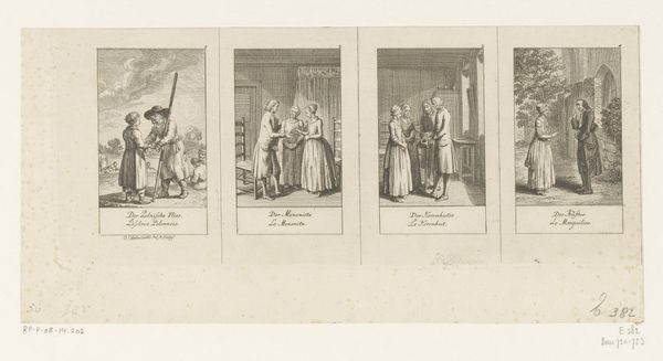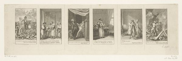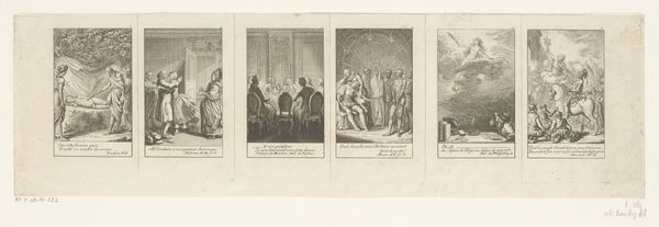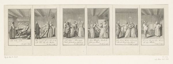 Daniel Nikolaus Chodowiecki created these six scenes from Cecilia, using etching, sometime in the 18th century. These miniature scenes offer a glimpse into the moral and social ideals of the era. Chodowiecki was a master of the small-scale, capturing the nuances of bourgeois life in Germany. Notice how each scene is carefully staged, almost like a theater production. The clothing, the gestures, the settings – all speak to a society deeply concerned with propriety and virtue. But this wasn't simply a reflection of society; it was actively shaping it. Prints like these were widely circulated and collected, becoming tools for education. They served as guides on proper behavior, reinforcing the values upheld by the dominant middle class. To understand Chodowiecki’s vision, we can look at conduct books, popular literature, and the history of printmaking during this period. By understanding these contexts, we can better grasp the role of art in shaping social norms.