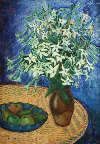 Oleksa Novakivskyi created this captivating oil painting, titled "Flowers," employing vibrant colors and expressive brushstrokes. Novakivskyi’s work emerged in the early 20th century, a period of cultural renaissance in Ukraine, but also a time of great political turmoil and social upheaval. Flowers in vases, like this one, became popular subjects, referencing still life traditions while offering a symbolic form of beauty and resilience. They were a powerful symbol of national identity amidst political pressures. Novakivskyi established an art school in Lviv, nurturing a new generation of Ukrainian artists. His legacy is intertwined with the development of Ukrainian art institutions. The detailed study of Novakivskyi’s life and work alongside the social, cultural, and political context of early 20th century Ukraine, enhances our appreciation for this painting. We can begin to grasp the profound connections between art, identity, and history.