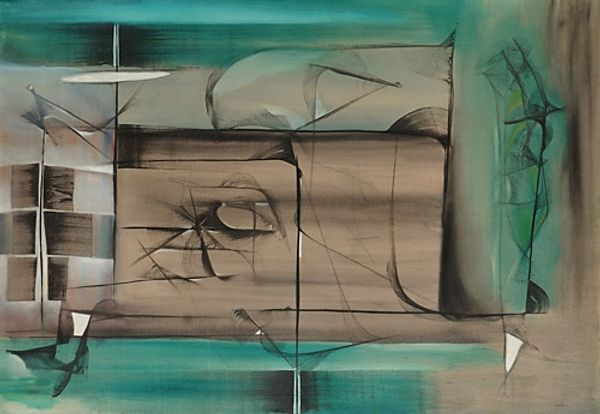 Editor: This untitled piece, created around 1946 by Mark Rothko, uses watercolor and ink on paper. It strikes me as a kind of negotiation between form and dissolving boundaries, a tension between the structured horizontal bands and the more fluid, amorphous shapes within. What sense do you make of it? Curator: That's a perceptive reading. I see it reflecting the anxieties of the postwar era. The abstract forms and colors can be interpreted as a response to the trauma and uncertainty following World War II, but in the U.S., abstract painting became intertwined with American cultural identity and even a kind of quiet political expression during the Cold War. Editor: Political? In what way? Curator: Abstract Expressionism became a symbol of American freedom of expression, contrasting with the more rigid, state-controlled art of the Soviet Union. Museums played a key role in promoting this idea. Editor: So, this artwork became a pawn? Curator: It wasn’t consciously created for that purpose, of course. But its embrace by institutions solidified its connection to those larger cultural narratives, which shapes how we view it today. The loose lines and color choices could show an interest in spiritualism, aligning with the search for meaning in the aftermath of global conflict. What about its materiality stands out to you? Editor: The roughness of the paper makes me feel it shouldn’t be in a museum. Maybe it would feel more relatable if it was in an educational space, where handling might be allowed. Curator: Interesting. Its presentation certainly influences how we perceive its value, doesn’t it? I suppose artworks are valued as social objects as well as cultural artifacts. Editor: Exactly. I hadn't considered its institutional role so explicitly, how context transforms our interpretation. Curator: And I see I took for granted what it means for a museum to house such delicate items. Thanks to you, I am inspired to find ways to invite the audience to experience the artworks beyond the context of their setting.