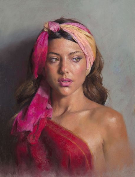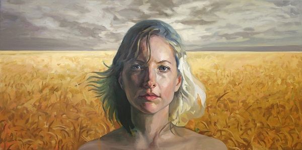 Curator: We're looking at Aaron Nagel’s oil painting, "Brooke in Light II," created in 2015. Editor: My first impression is one of luminosity and tranquility. The soft focus and gentle colors give it an ethereal quality. It's almost dreamlike. Curator: Yes, the lighting is key, creating a sense of both vulnerability and inner strength. Light, of course, holds loaded symbolism – from divine grace to enlightenment. Does it conjure those concepts for you here? Editor: Absolutely. The way the light washes over Brooke's face—leaving parts in shadow, especially on the right side—emphasizes her features and gives her a pensive expression. Structurally, this high contrast between light and shadow builds considerable visual drama, no? Curator: Precisely, that contrast directs the eye, but beyond technique, there's a psychological depth being plumbed, right? This positioning – in the light, yet partially veiled by darkness – it’s as though Nagel’s channeling the traditional chiaroscuro effects of, say, Rembrandt. This effect is not only a technique but also adds to its symbolic content – darkness partially hiding but not obliterating the subject's essence. It seems the portraitist's intention transcends realism. Editor: I see what you mean. There is a very controlled palette as well. Soft pinks, creams, muted blues in the background. These are colors that calm rather than excite; they speak of stillness. It gives the portrait this quiet power; it is not bombastic or overwhelming. It subtly commands attention. Curator: Portraits have always carried potent cultural weight – documenting appearance, social status, but also internal character. And contemporary portraits especially, grapple with themes of identity in ways past conventions never imagined. So what reading might this offer on identity, given how it deploys symbol and painterly technique? Editor: Maybe that identity isn't fixed or wholly knowable. Like any good work of art, “Brooke in Light II” evokes more questions than it answers. It captures something transient and almost impossible to name. Curator: I agree. Nagel invites the viewer to meet Brooke not as a fully unveiled subject, but as one always becoming. Editor: An interesting and evocative work. I’ll certainly carry its impressions with me as I move on.