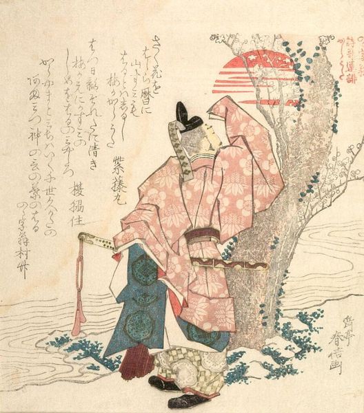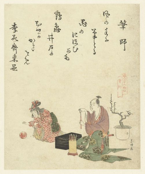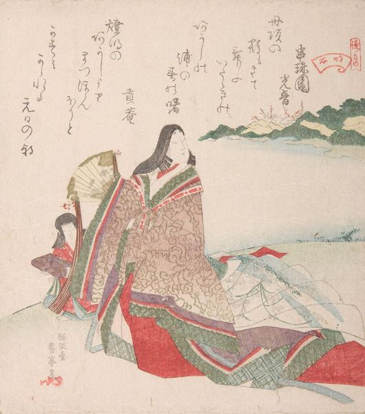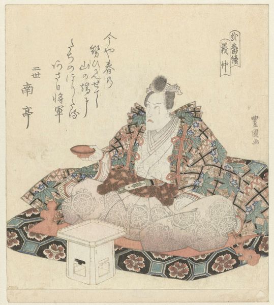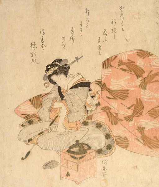 Editor: This is Kitao Masayoshi's "Seated Man in Blue-Silver Kimono," and while the date is unknown, its style is striking. The figure seems lost in thought, a moment captured with such delicate lines. What's your read on its cultural context? Curator: The kimono itself speaks volumes about social standing, doesn’t it? Its intricate patterns and the man's posture suggest a certain level of privilege. We must consider how such images functioned within the Edo period's artistic market and societal hierarchies. Editor: So, it's not just art, but a marker of status? Curator: Precisely. The print circulated within specific social strata, reinforcing and perhaps even critiquing the roles within that society. Did this change your initial perspective at all? Editor: Definitely, I see the man's stillness as maybe a commentary on the constraints of his position. Thanks! Curator: My pleasure! It's through these nuanced readings that art truly comes alive.