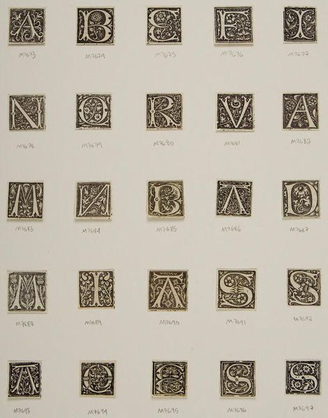 Curator: Ah, this grid of illuminated letters—each one a tiny window into a world! The Harvard Art Museums hold this artwork titled "Letter F." It's by an anonymous artist. Editor: It's like a miniature bestiary in monochrome! I see squirrels, birds, dragons... nestled within these letterforms. The dense, intricate detailing pulls you right in. Curator: Right, these sorts of decorated initials were often used to mark the beginning of important sections of text in medieval manuscripts. Imagine the dedication it took to craft each one! Editor: Absolutely. And the societal context! The labor, the patronage... these letters speak volumes about the value placed on the written word, and on visual embellishment, within those communities. Curator: I hadn't considered how access to such artistry was regulated back then... It's pretty cool how something as seemingly simple as an alphabet has such deep roots. Editor: Yeah, a real testament to how art and daily life were often intertwined. Curator: It does give one a new perspective on the humble letter. Editor: Precisely, perhaps even prompting us to consider how we might embellish our own narratives.