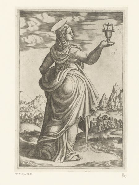 This is H. Matteüs, made by Lucas Kilian around the early 17th century using engraving techniques. Kilian used a burin to carve lines into a copper plate, which was then inked and printed onto paper. The image displays a high level of skill and control, with fine lines creating a sense of depth and texture, particularly in the drapery and the saint’s face. This printmaking process allowed for the mass production and distribution of images, playing a crucial role in disseminating religious and cultural ideas. The production of prints like this one involved a significant amount of labor, both in the skilled handwork of the engraving and the more mechanical processes of printing. Consider the social context, where the rise of print culture democratized access to images, but also depended on a system of workshops, apprenticeships, and market exchange. Paying attention to these material and social dimensions helps us appreciate how the artistry of printmaking intersects with the broader currents of commerce and culture.