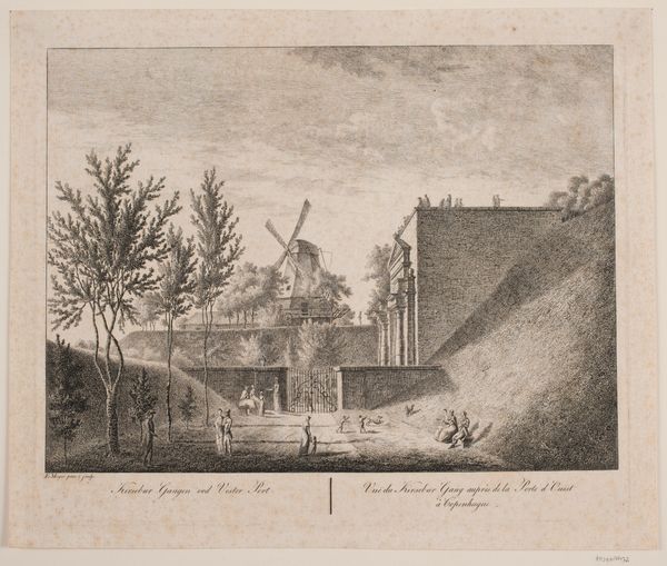 Abraham Rademaker made this print of the Herenpoort in Leiden, Netherlands, in the early 18th century. The gate itself, centered in the image, gives way to a world of leisure. The image emphasizes the gate's function as a site of social passage. Its purpose was to regulate movement and trade but it also marked a transition between different social spheres. Here, the cultural references emphasize order and prosperity, reflecting the values of the Dutch Golden Age. However, the inclusion of working figures, such as the fisherman, suggests Rademaker's awareness of the labor that underpins this affluent society. The windmill in the background is a nod to industrial activity. By examining period maps, municipal records, and trade statistics, we can understand how such images reinforced ideas about civic identity. The historian’s role is to unpack the complex relationship between art, power, and social life.