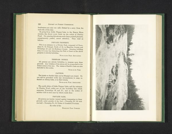 This is a photograph of Chapel Pond Pass (State land) by Seneca Ray Stoddard, dating back to the late 19th or early 20th century. The composition is dominated by strong diagonal lines created by the mountain and the winding path. Stoddard frames the scene tightly, drawing us into the depth and texture of the natural landscape. The stark contrast between light and shadow intensifies the ruggedness, evoking a sense of drama. The semiotic interplay here is quite compelling. Mountains often symbolize grandeur and the sublime, while paths connote journeys and transitions. Consider how the dark, shaded areas, coupled with the steep incline, could signify challenges. The photograph invites contemplation on our relationship with nature. Does the path offer a route to greater understanding, or does it underscore the formidable power of the natural world? Ultimately, the photograph presents a visual field where nature's structure and human interaction coexist, leaving viewers to ponder their role within this grand landscape.