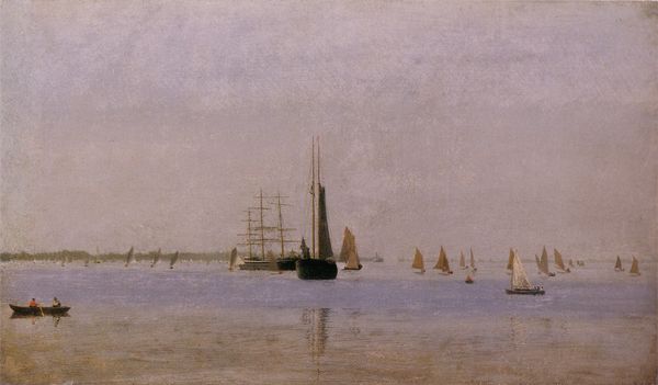 Granville Redmond made this painting of San Pedro Harbor with oil on canvas, and it’s like a hazy dream. The whole thing is built up from these scrubby brushstrokes, a limited palette, almost monochromatic, like he’s trying to catch the light just as it kisses the water. Looking closely, you can almost feel the texture of the paint, especially in the sky. Redmond doesn’t hide the process; it’s all right there on the surface. The physical stuff of the paint becomes part of the picture, giving the scene this tangible, almost melancholic feeling. Take those masts, for instance, they are not just lines, but physical strokes that reach upwards. Redmond was deaf from a young age, and you wonder if his sensitivity to texture and light might have been heightened because of it. He reminds me a bit of James McNeill Whistler, in that he's chasing a certain mood, a tonal harmony rather than a literal depiction. It makes you think about how we perceive the world, and how art can be a way of making sense of the intangible.