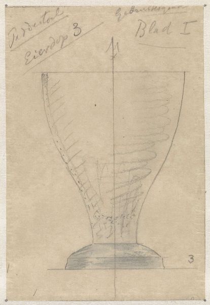 Here we have Mathieu Lauweriks' design for a chalice, rendered with graphite on paper. You can see the hand of the artist in the sketchiness of the lines. It's all about process, a kind of thinking through drawing. I love the way Lauweriks used graphite to give the chalice volume. The vertical lines at the base, drawn quickly and closely, create a sense of weight and grounding. The bowl of the chalice is a more complex form, a swirl of lines mapping out its curves, with each mark contributing to its overall shape. It's interesting how a sketch like this reveals the artist’s thought process. This piece resonates with the work of other architects and designers, like the Bauhaus artists, who explored the relationship between form and function, but it also brings to mind the raw energy of someone like Cy Twombly. Art is all about this ongoing dialogue, with each artist riffing on what came before, and Lauweriks' sketch is no exception.