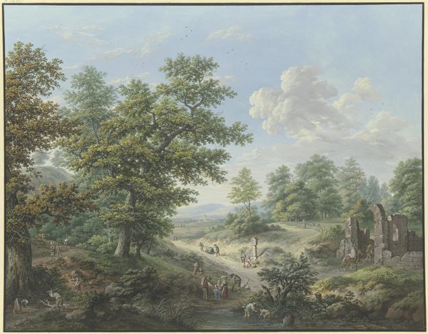 Cornelis Gerritsz Decker made this painting of the edge of an oak wood sometime in the mid-17th century, using oil on canvas. It's easy to overlook the materiality of painting, yet Decker’s technique is evident in every brushstroke. Looking closely, you can see how he has built up the scene through layers of glazes, achieving a marvelous illusion of depth. The earth tones, greens, and blues, skillfully blended, create the atmosphere of a dense forest, hinting at nature’s power and plenty. In the 1600s, pigments were derived from minerals, plants, and even insects, each requiring careful processing and mixing to achieve the desired color and consistency. Decker would have ground his own pigments, combining them with linseed oil to create paint. The canvas, woven from flax, provided a receptive surface for his vision. Consider the labor that went into the production of this artwork, from the harvesting of raw materials to the artist's skilled hand. Decker, like many artists of his time, straddled the line between craftsman and fine artist, and paintings like this offer an entry point into that fascinating relationship.