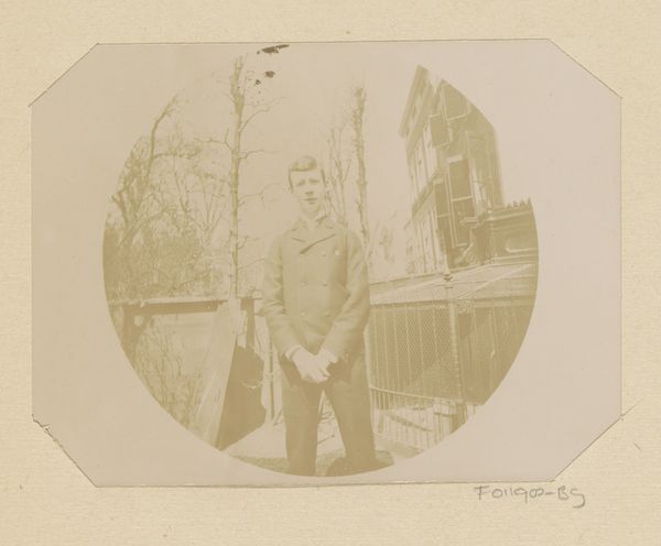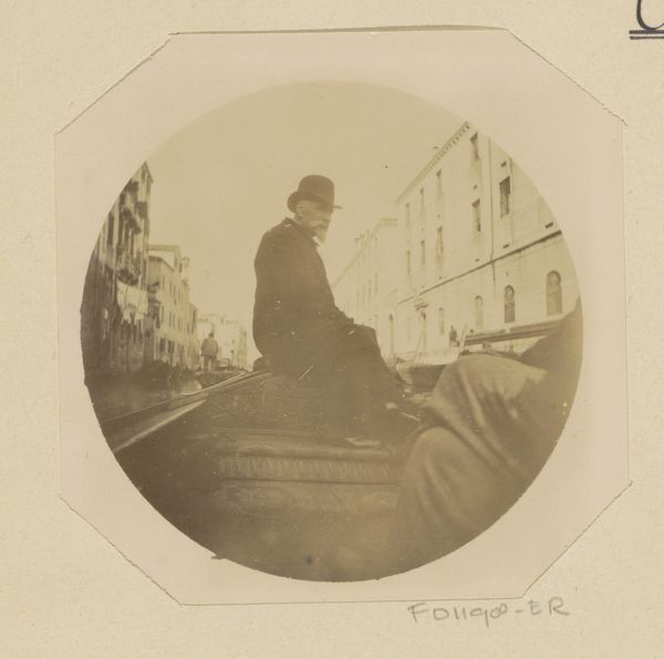 Editor: Here we have a gelatin silver print dating from between 1889 and 1893, entitled "Portrait of Willem Frederik Piek Sr. in a gondola in Venice.” It's such a simple composition, yet it evokes this intriguing feeling of travel and maybe a little bit of wistful contemplation. What jumps out at you? Curator: The figure, posed in profile against the backdrop of Venetian architecture, isn't merely a man in a boat. The gondola itself, the canals – they're loaded with cultural significance. Venice, particularly during that era, became synonymous with romanticism, decadence, even a kind of beautiful decay. Doesn't it suggest a meditation on time, memory, and perhaps the ephemeral nature of experience? Editor: I see what you mean. It’s not just a portrait, it's using Venice as a symbolic stage. So, how would that be read by someone viewing it in the late 19th century versus now? Curator: For a 19th-century viewer, the photograph probably conjured up existing literary and artistic associations with Venice. Now, perhaps we view it with an added layer of nostalgia, knowing the weight of history. We're seeing it through the lens of countless images and stories that have since been projected onto that city. Do you find that changes your own understanding of the photo? Editor: Definitely. Knowing that context makes me reconsider it. I initially saw it as just a man on vacation, but it clearly points to the complex interplay of visual signs and cultural history. Curator: Exactly! It's about unpacking the symbolic load that even a seemingly straightforward image carries. A rich reminder that visual culture and art always resonates and refers. Editor: Thanks so much. I definitely see more depth and intention in this photograph now.