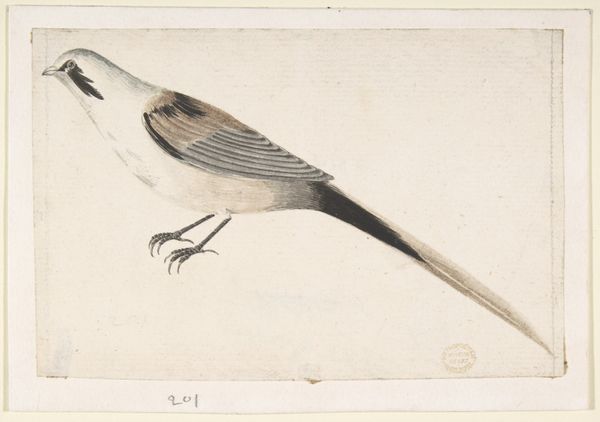 Elias Verhulst captured this Kwak, or Night Heron, with pen and watercolour. The composition is immediately striking. The bird's body arches in an almost impossible curve, challenging our sense of natural form and balance. Verhulst uses delicate lines to define the feathers, creating a texture that is both soft and precise. The muted palette, dominated by greys and browns, lends the image a sense of quiet observation. Yet, within this calm, there's a disruption. The bird's pose, combined with the stark white background, detaches it from any natural context. It becomes an object of study, a specimen meticulously rendered. This approach reflects a broader intellectual movement of the time: the rise of scientific classification. By isolating the bird and focusing on its distinct features, Verhulst participates in a project of ordering and understanding the natural world. The Kwak is not just a bird; it's a sign, a piece of visual data contributing to a larger system of knowledge. This careful rendering invites us to consider how we, too, participate in constructing and interpreting the world around us.