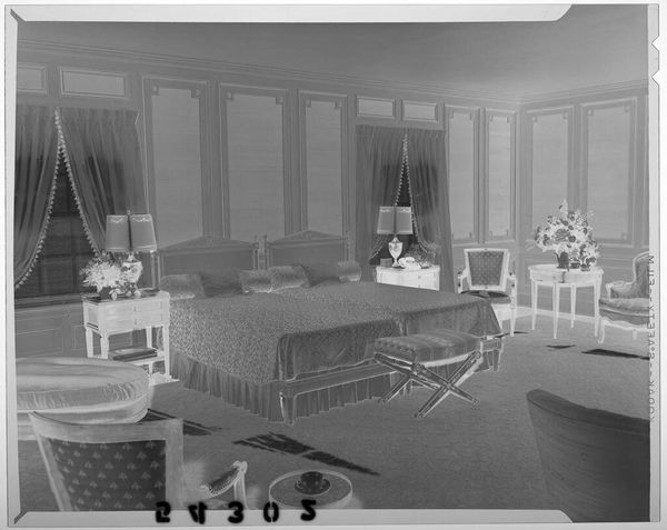 This photograph of a small house living and dining area was created by Robert Burian. The medium of photography is important here. Its indexical nature – the way light registers on film to create an image – provides a kind of evidentiary truth. Consider the materiality of the furnishings: the wood-paneled wall, the linoleum floor, and the patterned curtains. These materials speak of mass production, affordability, and a certain aesthetic aspiration. The attention to detail in arranging the furniture and objects reveals a desire to create a comfortable and stylish home. Note the labor involved in maintaining this space. The act of cleaning, arranging, and caring for these objects reflects a dedication to domesticity. By focusing on the materials, processes, and social context, we gain a deeper understanding of the values and aspirations embedded in this seemingly ordinary scene, challenging traditional distinctions between fine art and everyday life.
