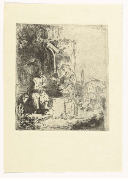 Curator: This is an etching titled "The Return of the Prodigal Son," created by an anonymous artist after 1636. It resides here at the Rijksmuseum. What's your immediate impression? Editor: My breath caught. It feels both profoundly intimate and agonizingly public. That stark contrast—the father's embrace and the scrutinizing figures looming in the background—it speaks volumes. Curator: Indeed. The baroque style emphasizes the dramatic tension. The figures are tightly packed, and the print medium contributes to the immediacy; there’s a certain rawness in the etched lines, isn't there? Editor: Absolutely. It's a study in black and white, yet it conjures up shades of guilt, relief, judgment, and forgiveness. What strikes me is how the artist focuses less on the material splendor the son squandered, and more on the palpable *lack*— the father's tender hand and the son’s ragged appearance is heart wrenching. Curator: That focus mirrors a broader socio-economic dynamic: the reduction of narrative to the central dynamic. While we see what are likely representations of onlookers from the narrative itself and those possibly associated with domestic work, their representation in this piece makes clear who this piece emphasizes. Editor: A key interpretation is in that light and shadow play—it carves out a deeply emotional core. Like all morality tales, you just know they make the point of how difficult it can be, while using a narrative painting to demonstrate it visually. It leaves a lump in my throat, thinking of familial bonds stretched to breaking. It feels timeless and, honestly, universal. Curator: Absolutely. We observe a convergence of various material themes – a print's capacity for accessibility married to this era's style. Each impression contributing to an ongoing cycle of production, and ultimately the democratization of these stories for mass distribution. Editor: Makes you wonder about the engraver, doesn’t it? Did they consider the broader audience, how their craft would extend this very poignant, moralizing message to people far beyond the Rijksmuseum walls? Curator: I like thinking about it that way - the physical etching and reproduction of images being almost another part of the prodigal son’s own path and potential for mass interpretation, not just what we can view in front of us here. Editor: Agreed. This simple, unassuming print reverberates with echoes of remorse, hope, and, above all, the stubborn, messy endurance of love.