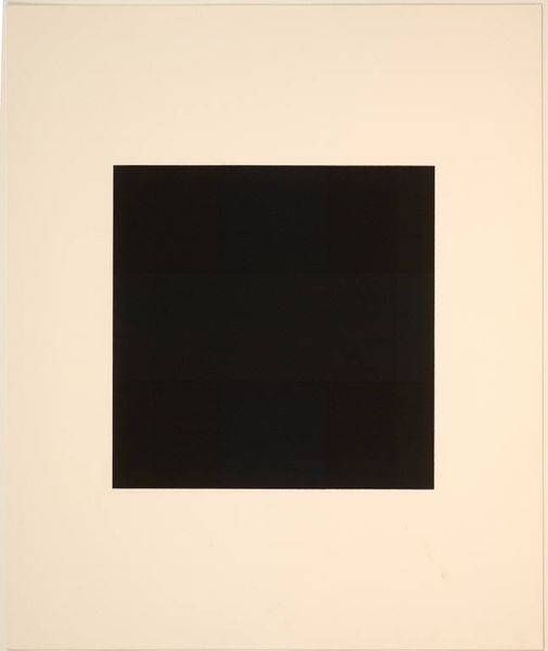 Editor: Frederick Hammersley’s "On and Off," painted in 1972 using acrylic, is strikingly simple. The black and white contrast is immediate. What I find interesting is how the negative space defines the shapes. What symbolic meanings do you see at play here? Curator: This painting invites us to consider dualities. Black and white, on and off, presence and absence. The starkness carries a certain weight. Think of ancient Taoist symbolism where white might stand for beginnings, purity, and the spiritual, while black embodies the unknown and the material. The central white line bisecting the dark void suggests a threshold, a decision point perhaps. Editor: A threshold... That makes me consider transitions, maybe from one state of being to another. So you see a possible visual relationship to Eastern philosophies? Curator: Hammersley's work, though abstract, isn't detached from cultural memory. The geometric shapes are simple, but they hold deeper symbolic echoes, and this interplay prompts psychological exploration. The title, "On and Off," makes me consider switches: power switches, emotional switches, maybe even existential states. What reactions are triggered in you by its directness? Editor: The title does bring it to life! Initially, it seemed static. But now I see it's about action. Maybe there is a challenge or question within the image itself, of our modern dependence of being "on." Curator: Exactly. Hammersley reduces the visual vocabulary to its bare essence. His composition and the very materials he chooses are rich with coded cultural and psychological cues. It invites reflection on the constant flux we experience as humans. Editor: I had not expected a black and white minimalist piece to lead me to ideas about shifting realities. Thank you! Curator: It's in those silences and that simplicity that profound revelations occur. A single, stark image allows one to appreciate the power of visual language on an intuitive and reflective plane.