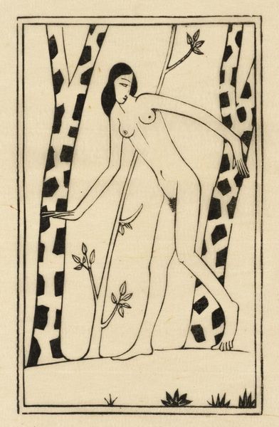 Editor: This intaglio print, called "Bare Woman in Profile and Tools," is by Anton Prinner, though we don’t know exactly when it was made. I’m immediately struck by how the figure is juxtaposed with all these tools—it feels almost like she's being dissected or objectified. What do you see in this piece, from a historical point of view? Curator: What I see is a powerful visual commentary on the objectification of women, prevalent throughout art history, but given new force in the 20th century with the rise of mass media. The arrangement, with the female form outlined sharply against a backdrop of rigid tools, evokes a clinical, almost surgical examination. Consider the tradition of the female nude within art history; Prinner's work subverts the male gaze by imbuing the image with a critical awareness of power dynamics. Does it challenge traditional representations of women? Editor: Definitely! It's almost as if Prinner is questioning the way women have been portrayed and used as objects throughout art history. The tools add a layer of almost violent… potential. Curator: Precisely. Think about the rise of industrialization and its impact on society's view of the human body—reducing it to mere function. What is he perhaps saying about women's roles in society at the time, with a focus on labor rather than beauty? Editor: That makes a lot of sense. I didn't consider the link between industrialization and objectification. It's much more than just a simple nude drawing now. I appreciate the shift in perspective, thinking about art's role in reflecting and challenging societal power structures. Curator: And understanding art is understanding society. We must continuously examine these narratives, consider context, and question assumptions if we are to move forward.