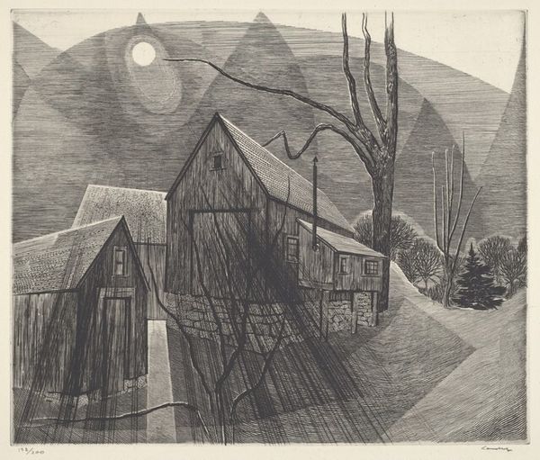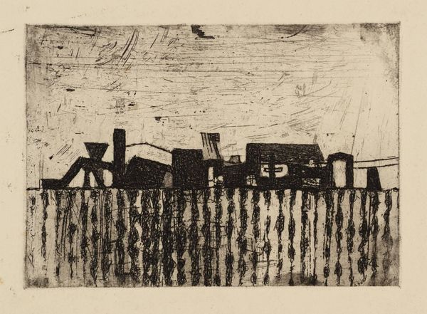 Blanche Grambs made this print, called Back Streets, using etching. The stark image encourages us to consider the role of the artist in representing working-class communities in twentieth-century America. We might ask, what kind of social commentary is being made here? Is it romantic, critical, or something else? The dark, looming buildings and sparse landscape create a sense of isolation. But what kind of isolation are we talking about? Is it economic, social, or simply a product of urbanization? Looking at the artist's biography, the history of printmaking, and urban planning documents from the time can provide additional context for interpreting this work. Ultimately, the meaning of this etching lies in the intersection of its visual elements and the socio-historical context in which it was created.