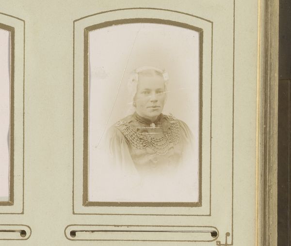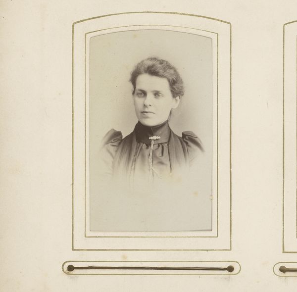 Editor: Here we have "Portret van een vrouw," a gelatin-silver print made sometime between 1880 and 1920, by Photographie De Concurrent. Looking at her, I get a sense of reserved dignity, but also, perhaps, of constraint. What do you see in this piece? Curator: I see a powerful visual statement about the societal expectations placed upon women during this transitional period. The portrait’s formality, from the subject's tightly styled hair to the high-necked dress, speaks volumes about the limited roles available to women. It’s interesting to consider, isn’t it, how the very act of having one's portrait taken could be both an expression of individuality and a reinforcement of social norms. What does this tension tell us about gender politics? Editor: That’s a fascinating point. I hadn't considered the power dynamics at play in the creation of the image itself. Was photography seen as empowering for women at this time? Curator: It's complex. On one hand, photography offered a space for women to participate in the arts, both as subjects and increasingly as photographers. On the other, portraiture often served to reinforce idealized images of femininity. Her expression – controlled, demure – seems to negotiate that space. Can we see in her face some subtle kind of resilience, maybe resistance? Editor: I think I do, now that you point it out. There’s a strength there, despite the rigid conventions of the time. This has really opened my eyes to how much context shapes our reading of an image. Curator: Exactly. It's about situating the work within those broader narratives and considering how it both reflects and potentially subverts them. Understanding this artwork goes beyond simply describing what’s visible; it requires engaging with the complex social and political landscape that shaped its creation.
