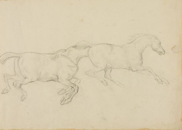 Ernst Fries created this pencil drawing, "Auf der Seite liegender Hund," which translates to "Dog Lying on its Side," in the early 19th century. The piece gives us a window into the intimacy between humans and animals during a period of immense social change. In the 1800s, class distinctions were stark, but relationships with animals often transcended these boundaries. This drawing, with its soft lines and gentle shading, evokes a sense of companionship. Fries, positioned in a society undergoing industrial transformation, captures a quiet, personal moment, offering a counterpoint to the era's rapid changes. The careful observation suggests an emotional connection, an acknowledgment of the dog’s presence and individuality. It is a tender portrayal that invites reflection on our relationships with animals, and reminds us of the shared moments of vulnerability and rest that connect us.
