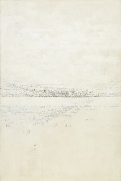 Editor: This drawing, "Zwei Frauen im Weinberg vor hügeliger Landschaft" or "Two Women in the Vineyard in front of a Hilly Landscape," is by Victor Müller. It looks like it’s done in pencil. It's so delicate and kind of muted. I wonder what's going on in this scene. How do you interpret this work? Curator: This piece strikes me as a commentary on labor, gender, and landscape, especially in the context of 19th-century Germany. We see two women positioned within the vineyard, a space that is both picturesque and productive. Consider the implications of their labor. What stories are not being told about those who cultivate the land and contribute to the economy? Editor: That's interesting. I hadn't considered the economic or social context. I was more drawn to the visual simplicity. Curator: The seeming simplicity, I believe, masks deeper social dynamics. The romantic landscape tradition often overlooks the human element, particularly the contributions—and exploitation—of the working class. What does it mean to have these women visible, yet somewhat obscured, within this idyllic setting? Editor: I see what you mean. Their presence is almost ghost-like. They are there, but also not fully acknowledged. Like they are a part of the background instead of the main subject. Curator: Precisely. The drawing then prompts us to consider not only what we see, but what is deliberately hidden or understated in artistic representations of labor and identity. The labor that sustains livelihoods can sometimes be made invisible through art. Editor: Wow, I never would have thought about that. It changes the way I see the entire piece. I thought the lack of detail was just stylistic, not something deeper. Curator: And now you’re thinking critically, questioning those initial assumptions, and that's the key. Editor: I definitely have a new appreciation for considering social issues and identity within landscapes. Thanks!