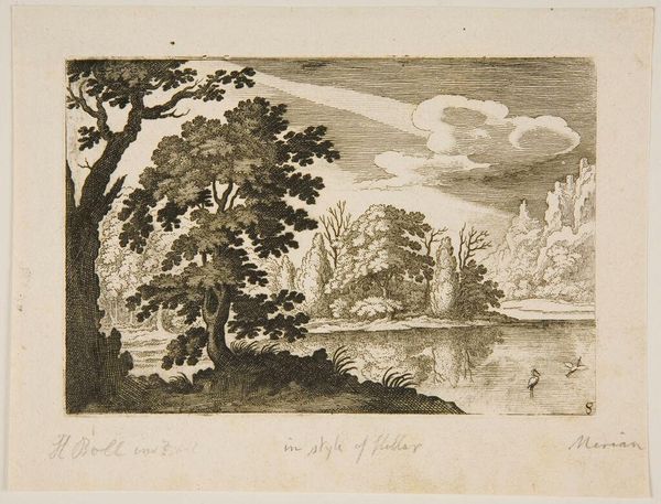 Editor: This is Hendrick Goudt's "Flight into Egypt," and the darkness really emphasizes the vulnerability of the figures. What do you see in this piece? Curator: It's a nocturne, a night scene, which was a popular subject then. But Goudt’s rendering… almost feels like a dream. The real subject might be how light—both physical and spiritual—pierces through the darkness. The figures seem protected by it. What do you think? Editor: That’s a lovely interpretation, this piercing light in the darkness, both as protection but also perhaps revealing this holy family in danger. Curator: Exactly! It's a beautiful, complicated tension.