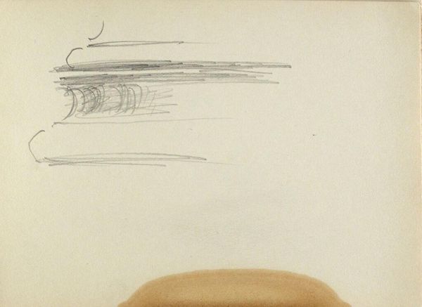 Curator: Isaac Israels created this work, "Ovaal voorwerp, mogelijk een schilderij," which translates to "Oval Object, possibly a painting," sometime between 1930 and 1934. It's currently held here at the Rijksmuseum. Editor: My initial impression is that it's surprisingly serene for what appears to be merely a preparatory sketch. There's a sense of stillness that is somewhat appealing, despite the bareness of the lines. Curator: The apparent incompleteness might reflect Israels' artistic position. He operated on the fringes of the established art world, focusing on impressions and quick studies rather than highly finished pieces. He exhibited with the Amsterdamse Joffers, resisting the mainstream art institutions of his day, which I always find fascinating. Editor: Structurally, look at the loose quality of the graphite lines creating that central oval form. Notice, too, how the internal crisscrossing hints at texture and three-dimensionality despite being relatively minimal. There's a compelling tension between suggestion and actual depiction. Curator: Do you think that he was working on a portrait? It makes me consider who may have commissioned a portrait by Isaac at that time, what class and political associations may be drawn between subject and author. Editor: The fact that the work remains “possibly a painting” only, offers much scope. Perhaps he was unsure, and yet he allows the possibility for us in his titling of it. I'm quite struck, too, by the shadow. What looks like one single, considered mark suggests both depth and scale with such a simple trick. Curator: It offers a wonderful glimpse into the artist's process. We see it for what it is—the preliminary thinking of a practicing painter rather than an overt symbolic representation. Editor: Precisely, and it reminds us of the beauty inherent in the initial spark of creation. Curator: The drawing, even in its understated way, can generate important questions about the period and its socio-economic milieu. Editor: Absolutely. It serves as an intriguing example of a sketch that transcends its perceived "unfinished" status to offer considerable artistic insight.