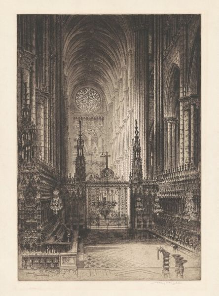 Rudolf von Alt rendered this watercolor of Emperor Frederick III's tomb in the Stephansdom in Vienna. Here, stone and light create a somber yet striking portrayal of eternal rest. Notice the arches supporting the tomb, a motif stretching back to Roman triumphal arches. These arches, symbols of victory and power, echo in later Christian architecture as portals to the divine, suggesting a transcendence from earthly life to eternal glory. Observe the repetition of the pointed arches and vertical lines, drawing the eye upward, reinforcing the church’s connection between earthly existence and the heavens. Consider how such elements of hope and continuity recur across cultures, reflecting a deep-seated human desire for meaning and permanence. These symbols create a non-linear, cyclical progression, resurfacing in different historical contexts, evolving to take on new meanings, yet retaining their capacity to engage our deepest emotions.