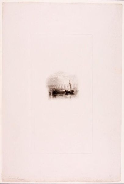 Harrie Gerritz made this print, Anonieme architectuur in onleesbare lucht, using etching, a process I really admire because it's all about controlled accidents. Look at the lines: the way they build up the form of the architecture, then dissolve into these wispy lines suggesting the sky. It’s like the structure is breathing, or maybe dissolving. The texture is wonderful: from that dense, velvety dark area at the bottom to the open, airy top half. The hatching feels both precise and intuitive; like Gerritz is thinking and feeling his way through the image at the same time. I'm reminded of the way Agnes Martin used lines to create these shimmering, barely-there grids. Both artists seem interested in the space between seeing and feeling, the way an image can be both solid and ephemeral. It’s a quiet piece, but there’s a lot going on beneath the surface.