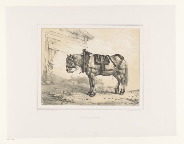 Editor: This is "Girl with Donkey in a Courtyard," an etching by Charles Boom, likely created sometime between 1868 and 1939. The scene has a kind of muted, solemn atmosphere, wouldn’t you agree? What do you see in this piece? Curator: It strikes me as a carefully constructed image steeped in subtle symbolism. Consider the donkey – often associated with humility and burden-bearing. And the girl – her expression, though serene, hints at a quiet resignation. How do these elements function together in your eyes? Editor: I hadn't thought about the donkey representing burdens! I was just focusing on the girl, maybe a young farm worker. So, you think there's something more than just a realistic depiction of rural life? Curator: Absolutely. The courtyard itself is enclosed, almost claustrophobic. This adds another layer – a sense of being confined. Perhaps representing social constraints or even the limitations placed upon women in that era. What story does it tell you? Editor: That’s interesting... It makes me see the girl’s stillness as a quiet resistance. Like she is bearing her burden, yes, but with a sort of inner strength. Curator: Precisely! Consider also the etching technique itself – the delicate lines creating a textured, almost dreamlike quality. Does this enhance the emotional impact? Editor: It does. It elevates the mundane to something more… meaningful. Thank you! It’s changed how I understand the artwork entirely. Curator: Indeed! Observing the cultural memory in symbols unveils greater depths of visual experience.