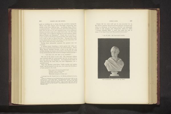 This monochrome print of Sir John Malcolm is found within the pages of a book. Its contrasting tones create a striking image against the backdrop of aged paper. The materiality of the print, with its visible fibres and textures, adds a tactile dimension. The structure of the composition is immediately striking. The figure of Malcolm, depicted as a statue, occupies the left page, balanced by the dense text on the right. This layout invites us to consider the interplay between representation and narrative, image and text. The choice of depicting Malcolm as a statue raises questions about permanence and representation. The print engages with broader philosophical concerns about the construction of identity and historical memory. It challenges fixed meanings, inviting viewers to actively interpret the interplay between image and text. As an object of ongoing interpretation, the artwork reflects how cultural and philosophical discourses are embedded in its very form and structure.