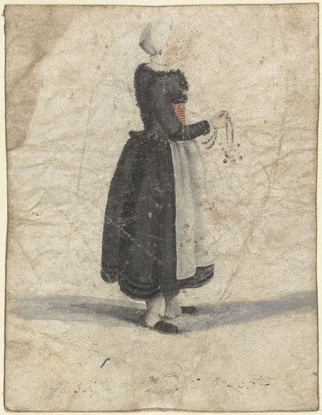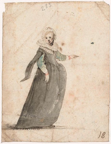 Gesina ter Borch, a Dutch artist working in the 17th century, created this watercolor of a child playing the violin. Ter Borch lived during the Dutch Golden Age, a period of economic prosperity and cultural flourishing in the Netherlands, but despite this progress, the lives of women artists were still constrained by societal expectations. This image shows the complicated relationships between class, gender, and artistic expression in the 17th century. While art education and expression were frequently restricted for women of the time, Ter Borch achieved recognition in a male-dominated sector, using her work to discreetly explore the lives of those around her. The child, dressed in what appears to be upper-class attire, provides insight into the era's social hierarchy. Ter Borch captures a private moment of music education, subtly critiquing the gendered and class-based restrictions of her period, while also creating a personal and emotional piece.