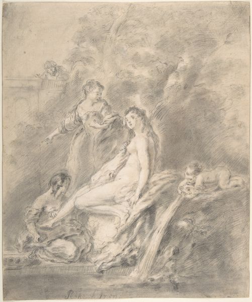 Editor: So, this is Hans Canon's "Skizze zur 'Marter des Hl. Hippolyt'" – a sketch for ‘The Martyrdom of St. Hippolytus’ – created sometime between 1860 and 1880, and rendered in oil paint. It’s quite shadowy, dramatic even… I'm intrigued by the ambiguity. What do you see in this piece? Curator: Ah, yes, the murkiness! It feels less like looking at a definitive statement and more like eavesdropping on an idea in its most nascent, volatile form. Canon's figures are emerging, ghost-like, from the darkness – or being consumed by it. This to me evokes that turbulent period when Romanticism began its fascinating dance with the more representational and historical-narrative focused styles. You could say that he's conjuring up history as a dreamscape, as a felt experience rather than a record of verifiable facts. What emotional notes does the painting strike in you? Editor: Definitely a sense of unease, of something violent but also spiritual. The way the light hits certain figures almost makes them look like they are ascending, while others seem trapped. Curator: Exactly! The sketch is charged with the energy of transformation, that charged point when suffering possibly transcends to spiritual triumph. Do you see hints of that struggle mirrored in the broader movements of the art world at that time, too? Editor: I do, actually. I guess I hadn’t thought of it that way – as a reflection of the struggle between different artistic movements themselves! Curator: Art, just like life, is frequently mirroring, a layered conversation through the ages. Thank you for those insights. Editor: And thank you for making me consider that even sketches can contain such powerful, historical narratives. It’s amazing how much history can be present even in the "unfinished".