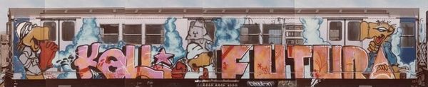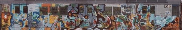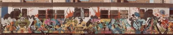 This photograph, by Henry Chalfant, captures Zephyr’s artwork on a New York City subway car, and it’s all about energy and process. The colors explode, a riot of blues, reds, and yellows fighting for space, a total free for all. The paint drips, splatters, and oozes, each mark a testament to the physicality of the act. Look at that broken heart, right there in the center. The deep red and the jagged crack are a gut punch, but then you see how it’s surrounded by those cartoonish, bubbly letters, and the mood shifts. It’s like the artist is saying, "Yeah, life can break your heart, but you gotta keep playing, keep making, keep moving." It reminds me of Basquiat, you know? That same raw, untamed energy, that refusal to be boxed in. Art isn’t just about pretty pictures, it's about life, struggle, and the messy, beautiful process of trying to make sense of it all.